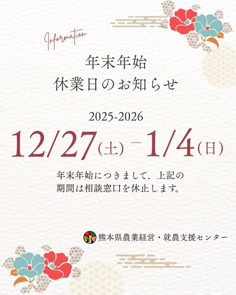 休業期間令和7年12月26日(土)~令和8年1月4日(日)